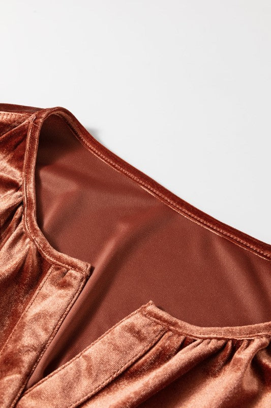 This dress combines luxurious velvet softness with expert design elements for timeless elegance. The short sleeves keep you comfortable while adding a modern touch, and the tiered skirt enhances movement and style with a boho-inspired flair. The waist provides a flattering silhouette, and the neck design elegantly frames your neckline, making this dress a chic choice for any occasion. Polyester/Spandex