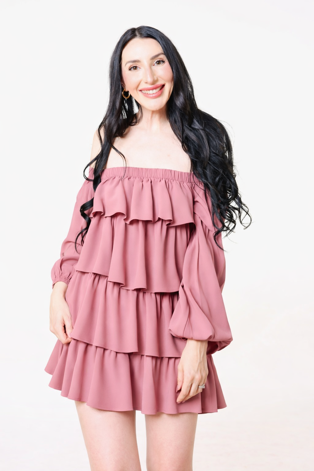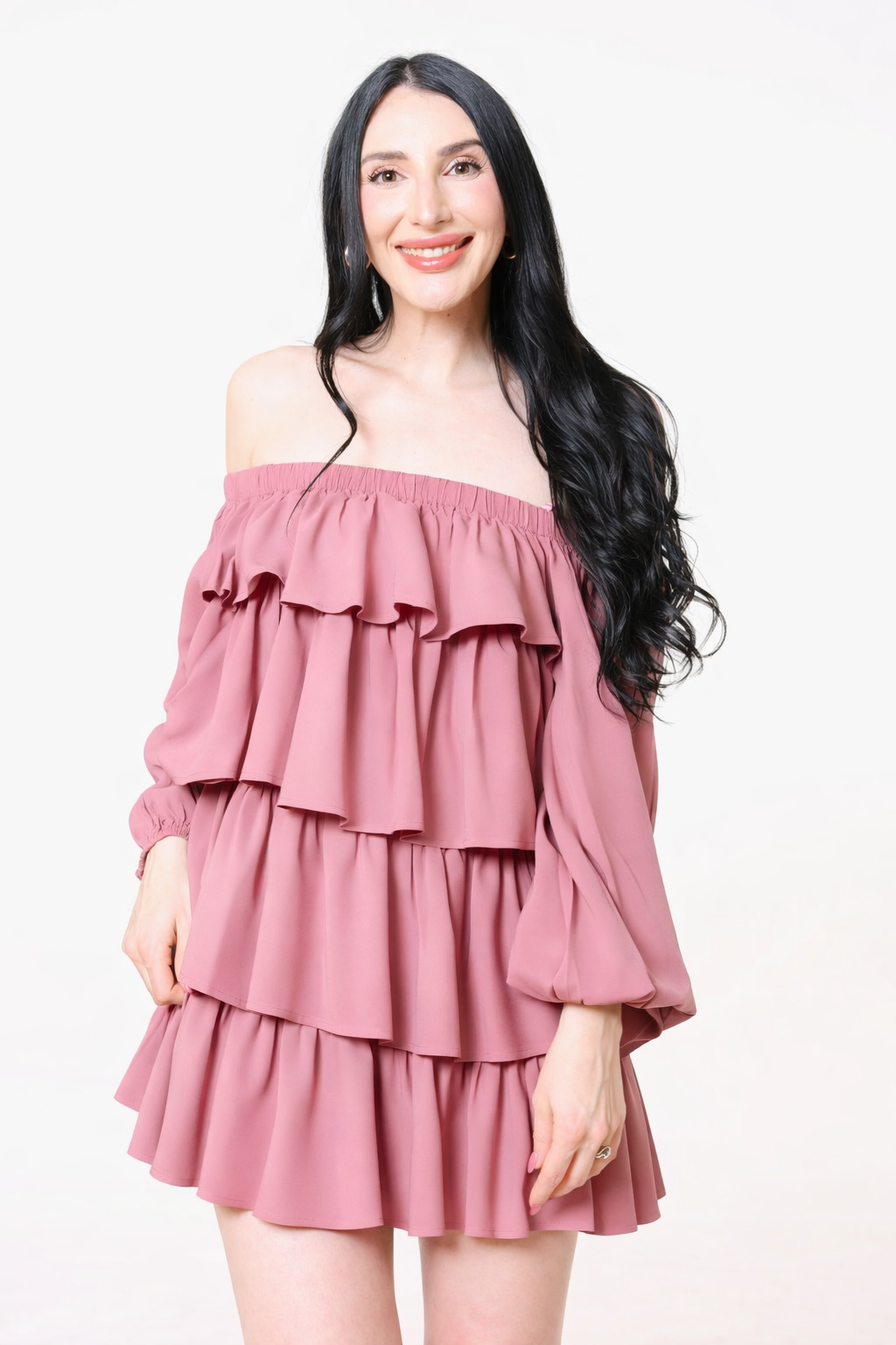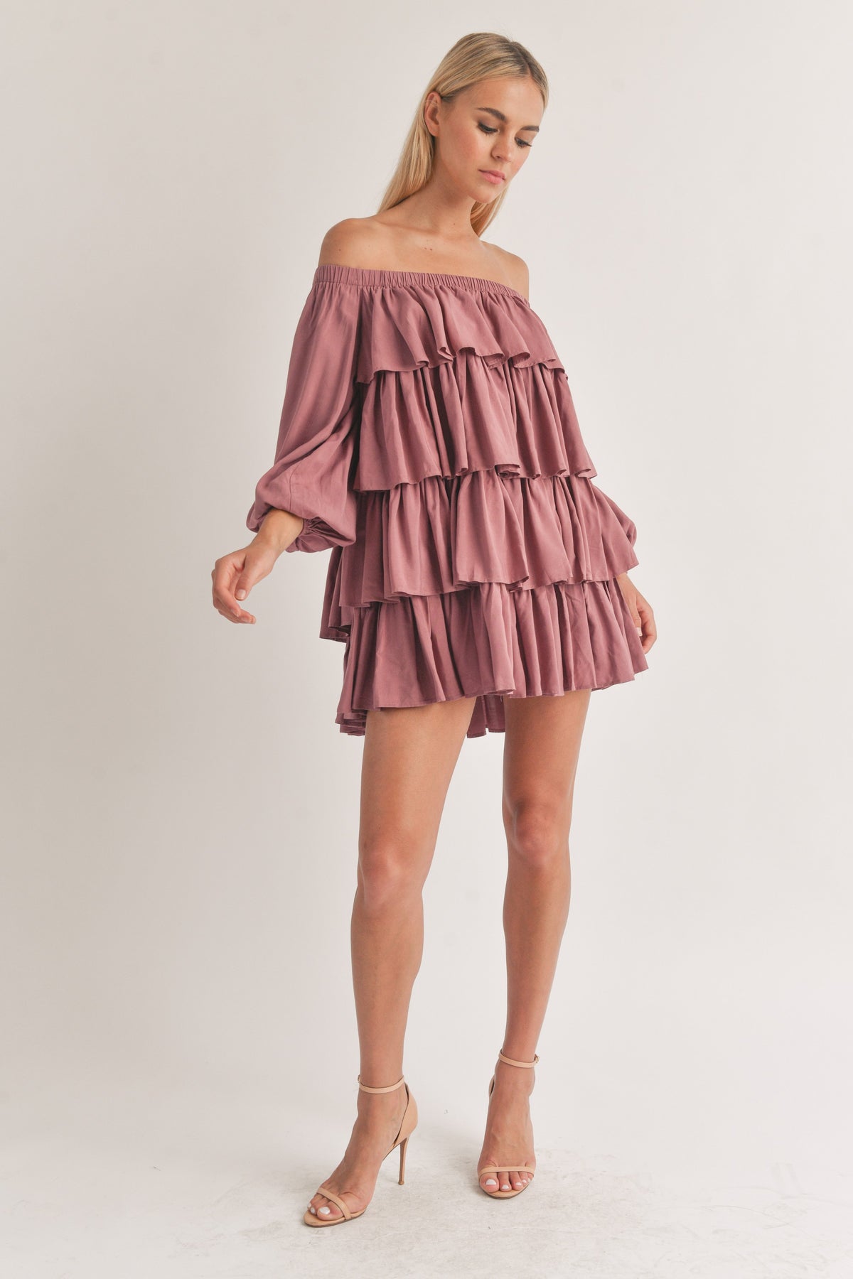 OFF SHOULDER TIERED RUFFLE DRESS