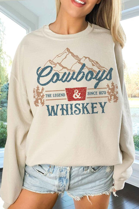 COWBOYS AND WHISKEY WESTERN OVERSIZED GRAPHIC SWEATSHIRTPREMIUM COTTONOVERSIZED FIT
